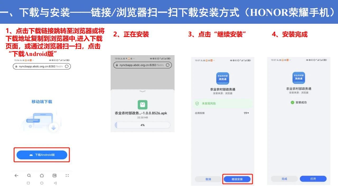 1.扫描农业农村部政务通APP二维码(目前仅安卓)下载安装。