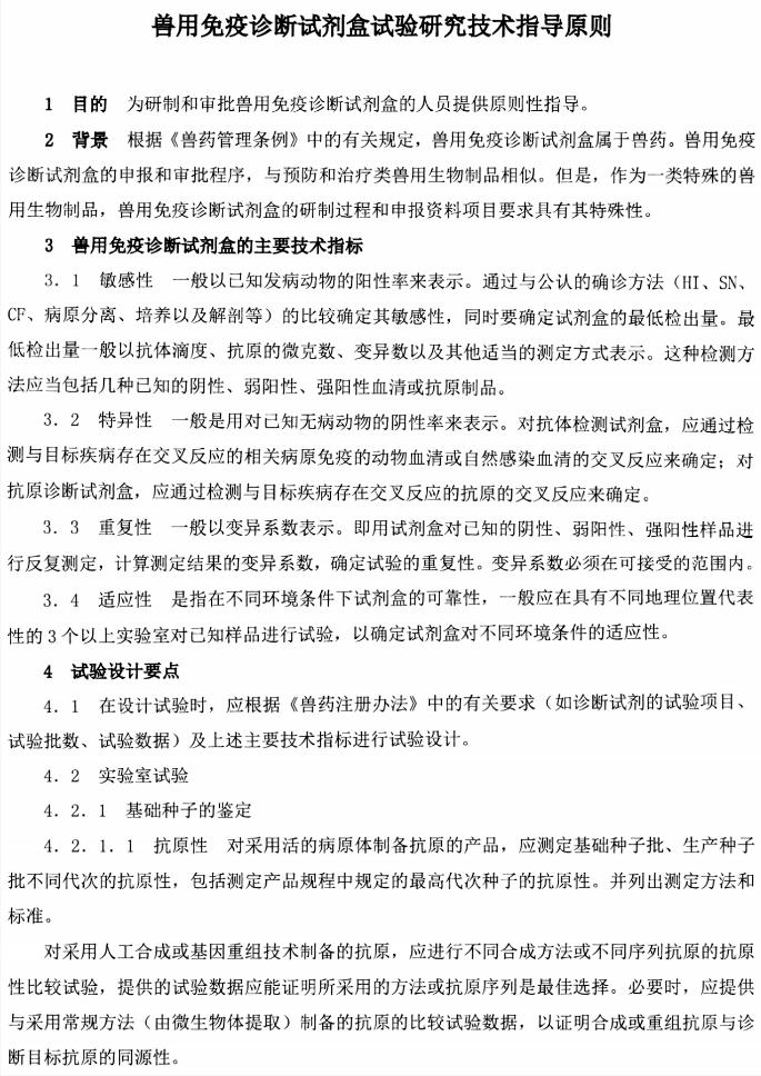 兽用免疫诊断试剂盒试验研究技术指导原则